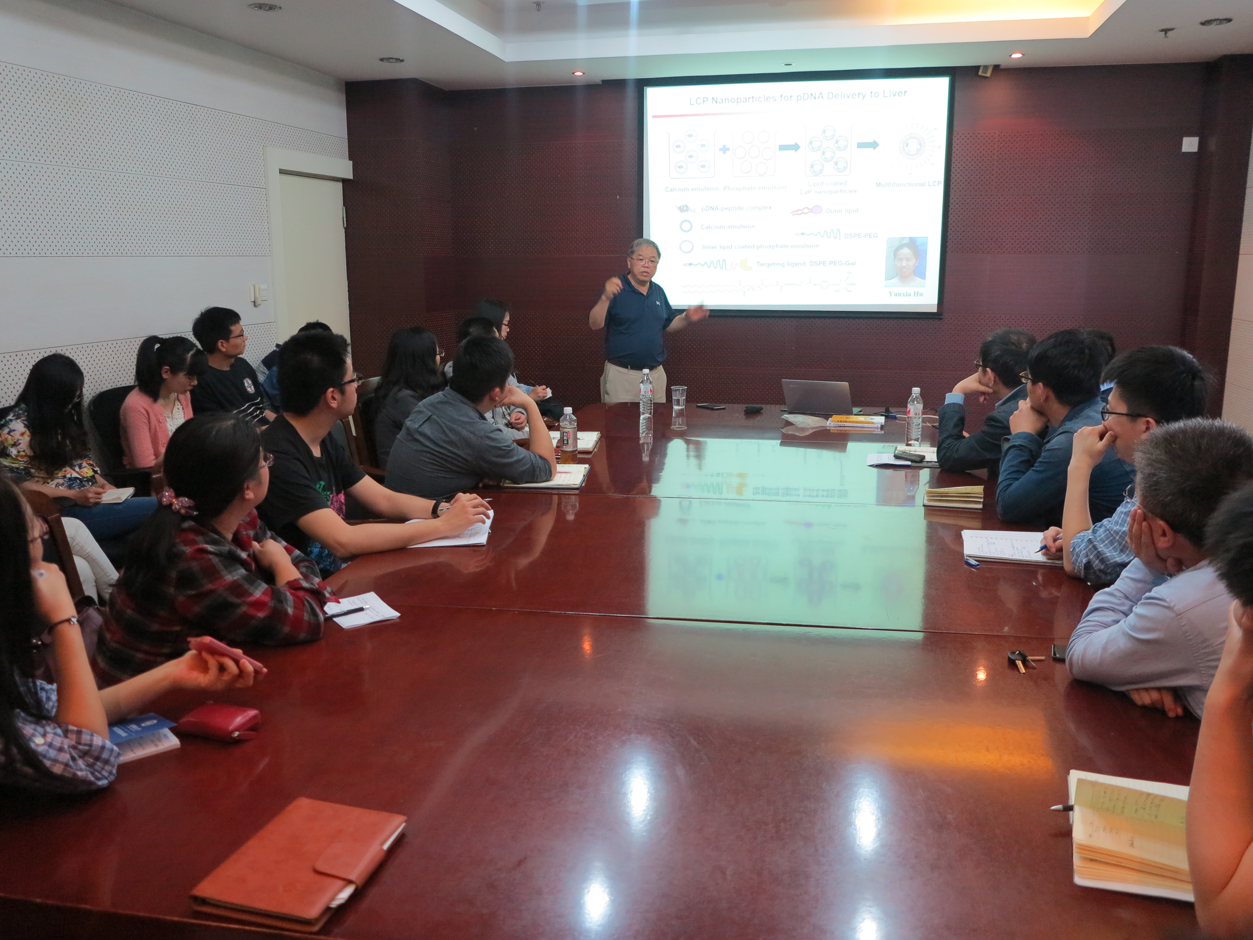 特聘教授黄力夫(Leaf Huang)博士,为华理师生作题为“Nanoparticle delivery of drugs and genes to desmoplastic tumors”的学术报告,报告会由高峰教授主持。