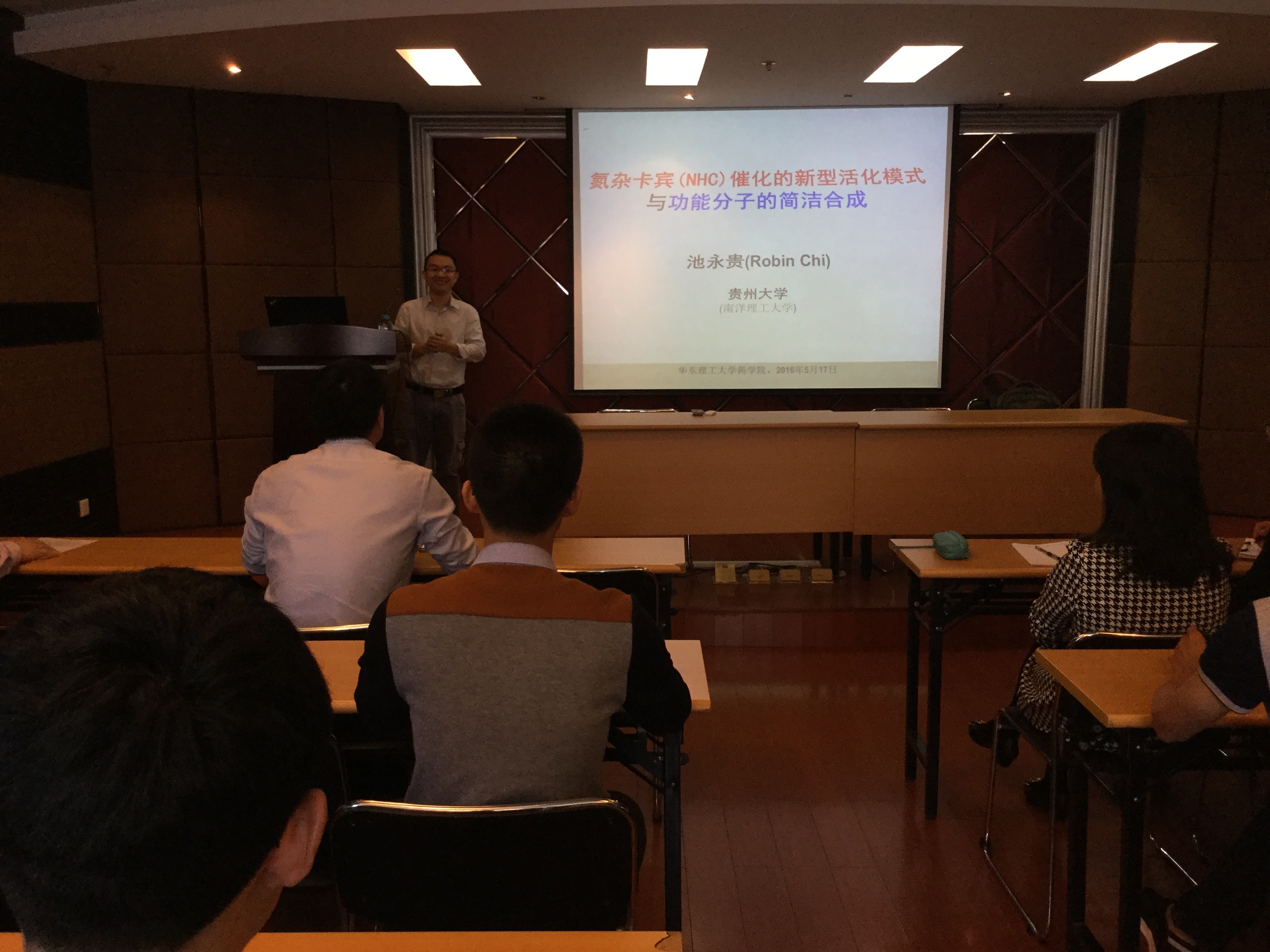 邀请,教育部*特聘教授(2014),贵州大学池永贵教授做客名师讲坛,于5月17日为华理师生作了题为“New Basic Activation Modes Enabled by Carbene Organic Catalysts and Rapid Synthesis of Functional Molecules”的学术报告。本次名师讲坛由澳门金沙娱乐城