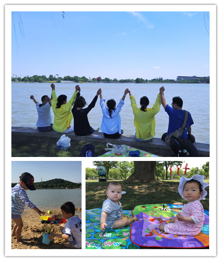 月湖雕塑公园坐落于上海市松江区,公园设计以春夏秋冬四季为主轴,将月湖沿岸分割成四季码头水岸,风景优美,遍布四季常青的果岭草地,随处可见姿态各异的雕塑作品。既适宜老师们三五为组闲庭信步、放飞思绪,又适宜小朋友嬉戏玩耍。进入园区,大一些的小朋友们一起结伴在公园夏岸的亲水沙滩边玩耍,有的拿着沙滩工具开心的“劳动”,有的结伴在戏水池边戏水,嘉年华游艺区的各个项目也是小朋友们的最爱,现场一幕幕和谐欢快的景象;擅长摄影的老师走遍了月湖雕塑公园春岸、夏岸、秋岸和冬岸,用相机尽情拍下美好的风景,留住这永恒的瞬间;有小宝宝的老师们三三两两聚在一起互相切磋着育儿经,说不完的感悟;有些老师和家属们还都互相认识,见面不忘交谈着工作上的合作内容……平日里看不到的老师家属,见不着的大宝二宝们,今天都聚集在一起,在上海月湖雕塑公园演绎着全家总动员的唯美!