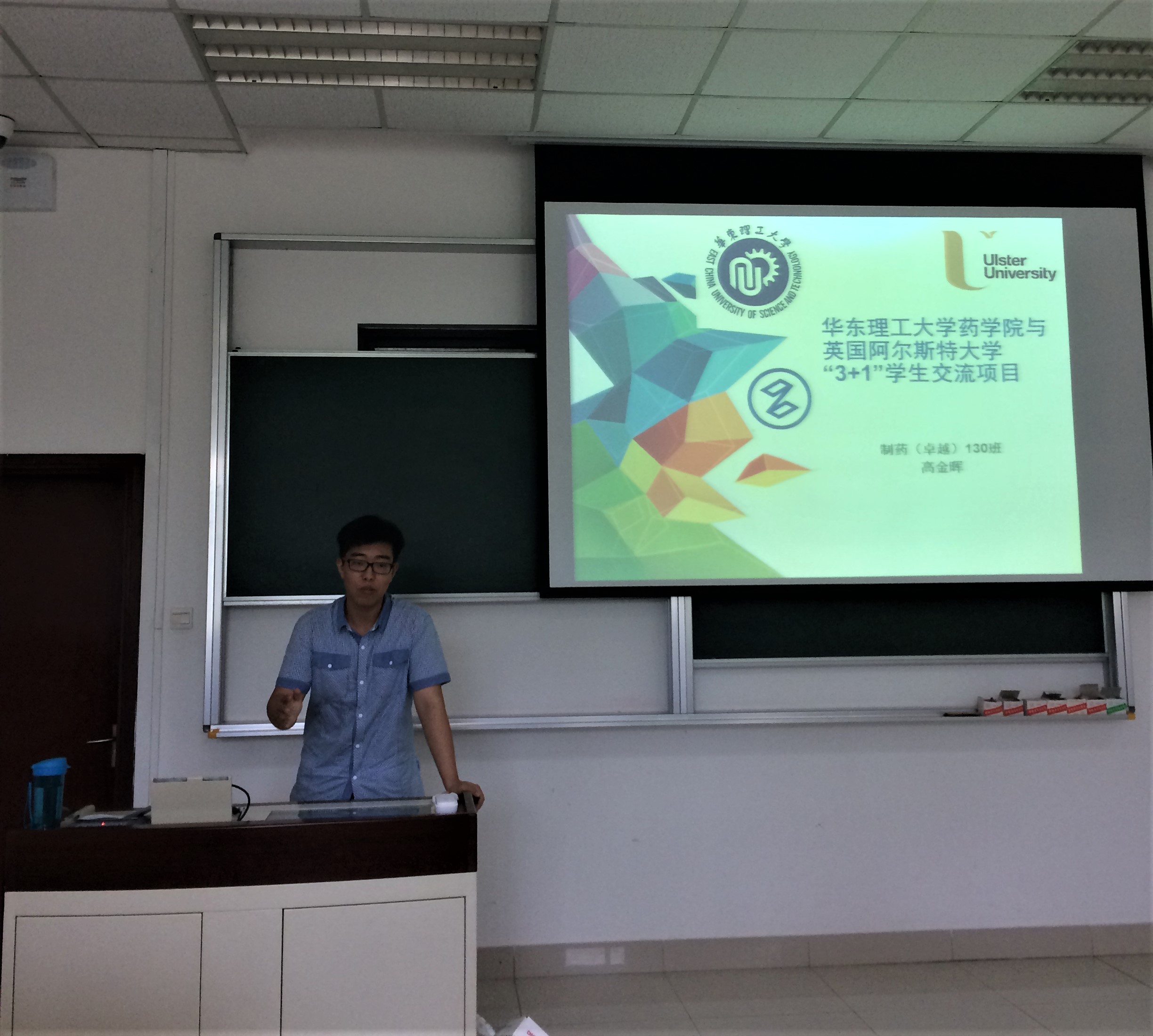 与英国Ulster “3+1”交流项目的交流学生。已获得华东理工大学本科毕业证书和工学学士学位,英国Ulster大学BSc Hons Pharmaceutical Sciences。目前高金晖已留在英国Ulster大学澳门金沙娱乐城