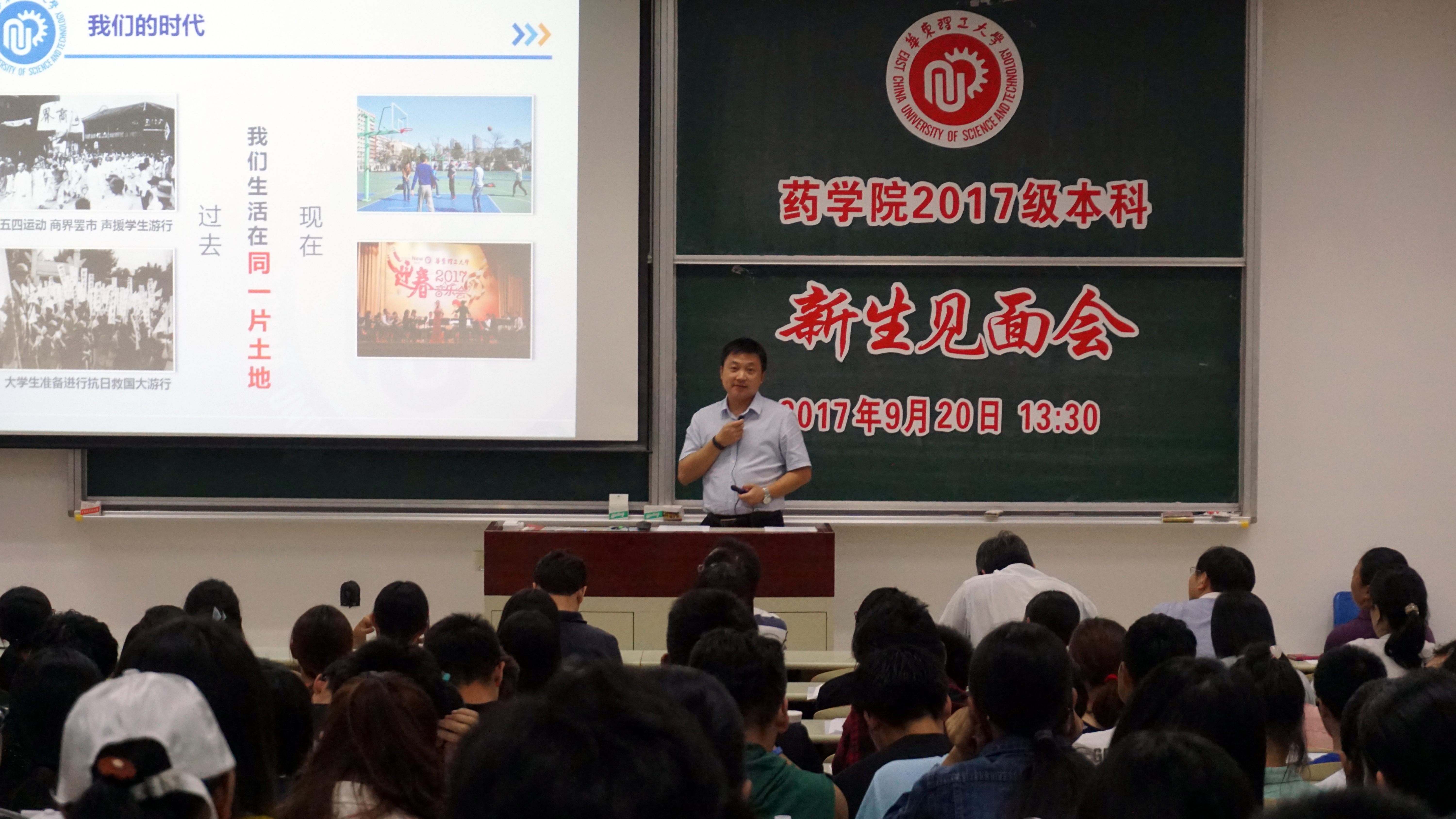 党委书记李剑以“我的华理,我的药院,我的大学”为题为新生带来一节生动的思政课。他从历史沿袭和校情概述等方面向同学们介绍了学校的历史与现状,并从澳门金沙娱乐城