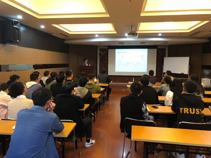 叶松主要从事氮杂环卡宾催化为主的有机合成方法学研究。在报告中,他系统的讲述了其课题组在氮杂环卡宾催化领域的工作,从最初卡宾催化烯酮化合物的不对称转化到后来卡宾催化中环化合物的不对称合成,再到最近报道的自由基参与的氮杂卡宾催化反应,逻辑清晰,层层递进。精彩的报告让在场的师生们对其课题组的研究工作及氮杂卡宾领域的发展脉络有了更加深入的了解。在报告结束之后,在场的师生们与叶松进行了热烈的提问互动,大家都表示收获良多。