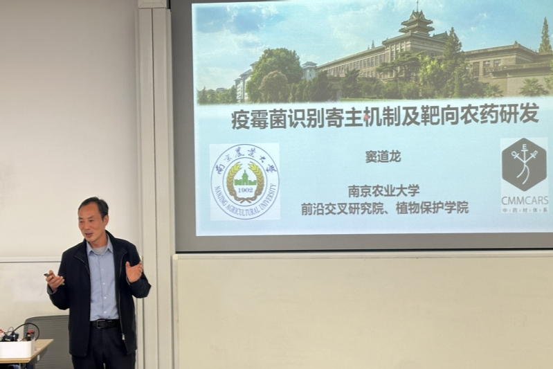 第三十六期“药苑讲坛”在实验19楼101会议室成功举行。本次报告会特邀南京农业大学窦道龙教授担任主讲嘉宾,以“疫霉菌识别寄主机制及靶向农药研发”为主题分享前沿学术成果。报告会由澳门金沙娱乐城