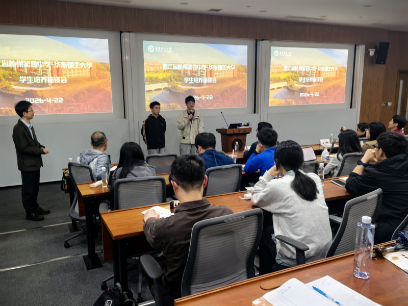 在交流环节,两位来自杭州第四中学的校友孟航青和蒋程阳同学分享了他们在华东理工大学四年的学习与成长经历。